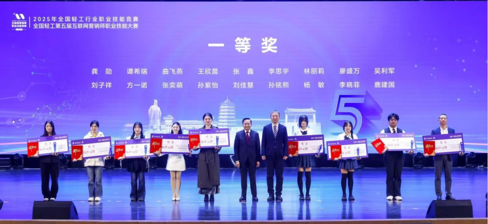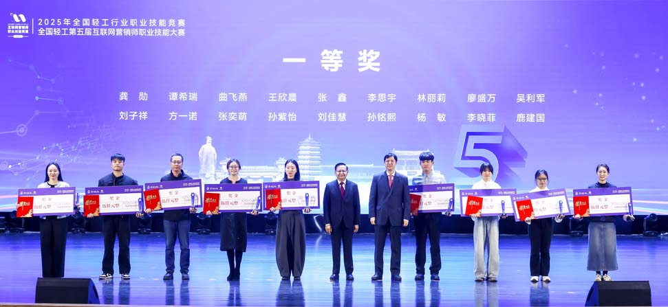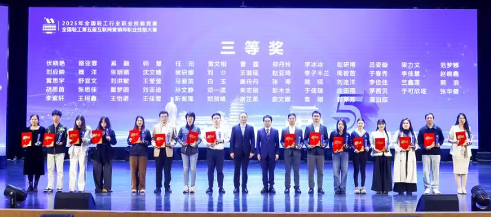 【本網(wǎng)消息】(商貿(mào)與融媒體學(xué)院 李曉菲供稿)10月25日,“2025年全國輕工第五屆互聯(lián)網(wǎng)營銷師職業(yè)技能大賽總決賽”在河北邯鄲臨漳縣圓滿閉幕,我校商貿(mào)與融媒體教師團(tuán)隊表現(xiàn)優(yōu)異,榮獲單人直播賽項一等獎1項、單人視頻創(chuàng)推賽項一等獎1項、單人視頻創(chuàng)推賽項二等獎1項、團(tuán)隊直播賽項三等獎1項。根據(jù)大賽章程,獲獎教師將同時獲得“全國輕工技術(shù)能手”和“全國輕工互聯(lián)網(wǎng)營銷行業(yè)技術(shù)能手”等國家級榮譽(yù)稱號。