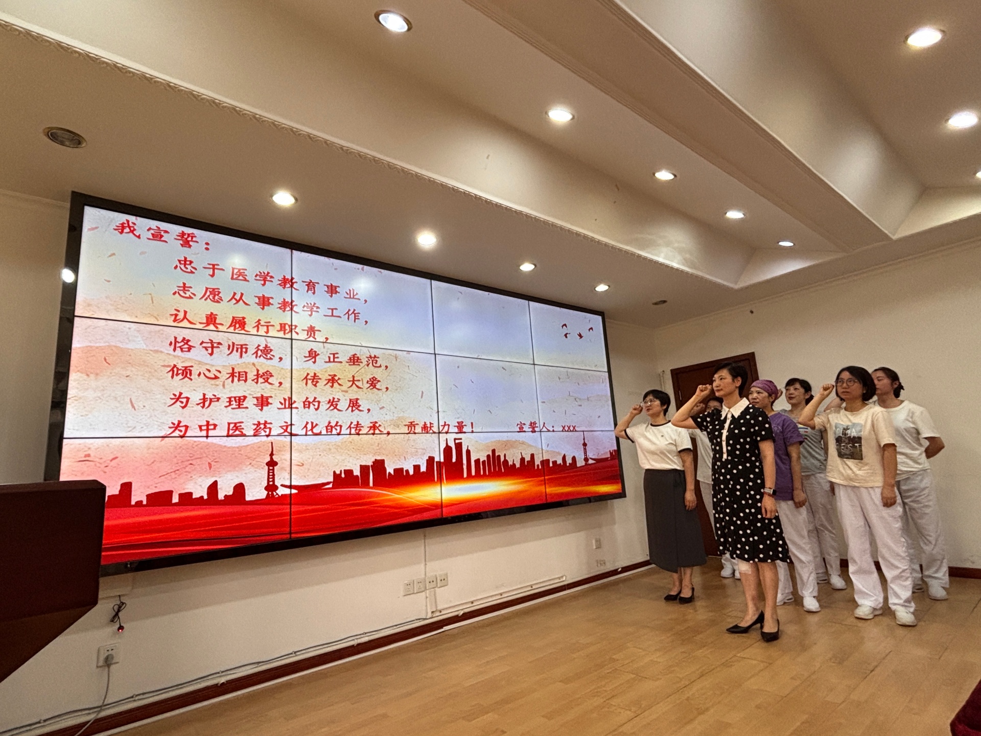 謝剛院長(zhǎng)在致辭中向新學(xué)員表示熱烈歡迎,他鼓勵(lì)學(xué)生珍惜“病房即課堂、導(dǎo)師即臨床教師”的學(xué)習(xí)環(huán)境,傳承醫(yī)院的“四道文化”,弘揚(yáng)中醫(yī)大愛與南丁格爾精神,努力成長(zhǎng)為有溫度、有技術(shù)的護(hù)理人才。