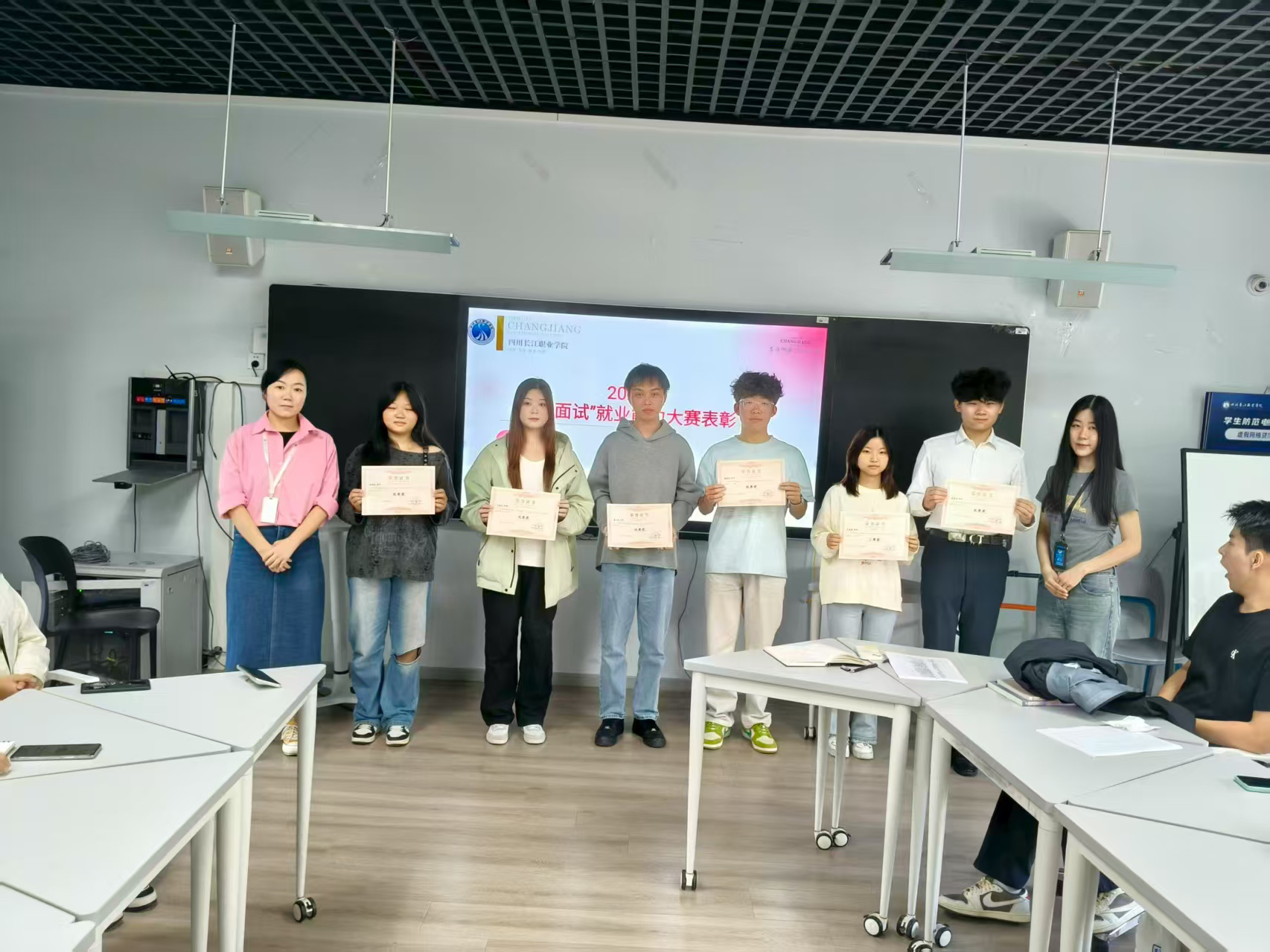 會(huì)議最后,對(duì)上一期“AI面試”就業(yè)能力大賽的獲獎(jiǎng)?wù)哌M(jìn)行了表彰,以此激勵(lì)全體學(xué)生積極投身各類職素活動(dòng),全面提升綜合競(jìng)爭(zhēng)力。