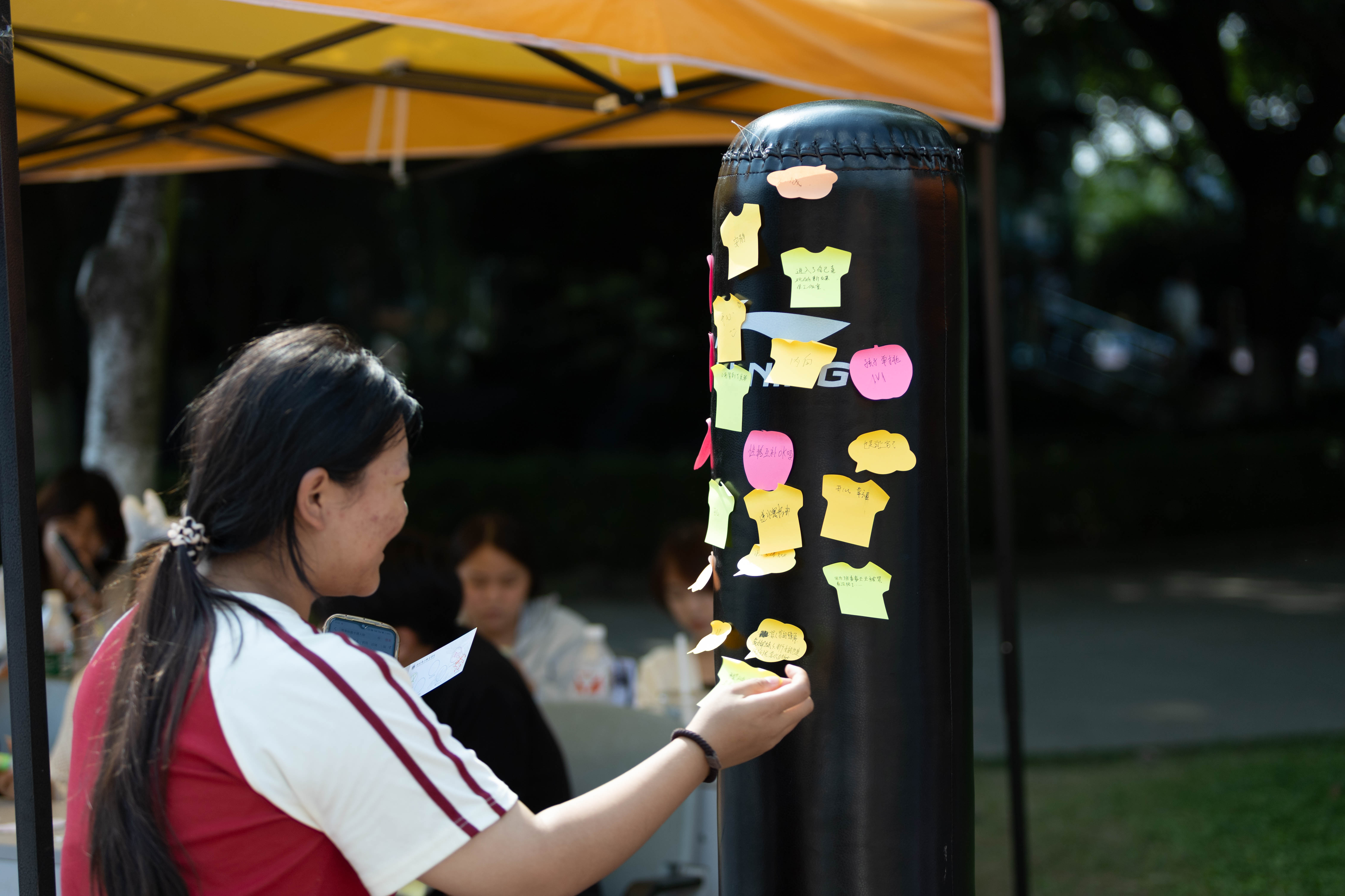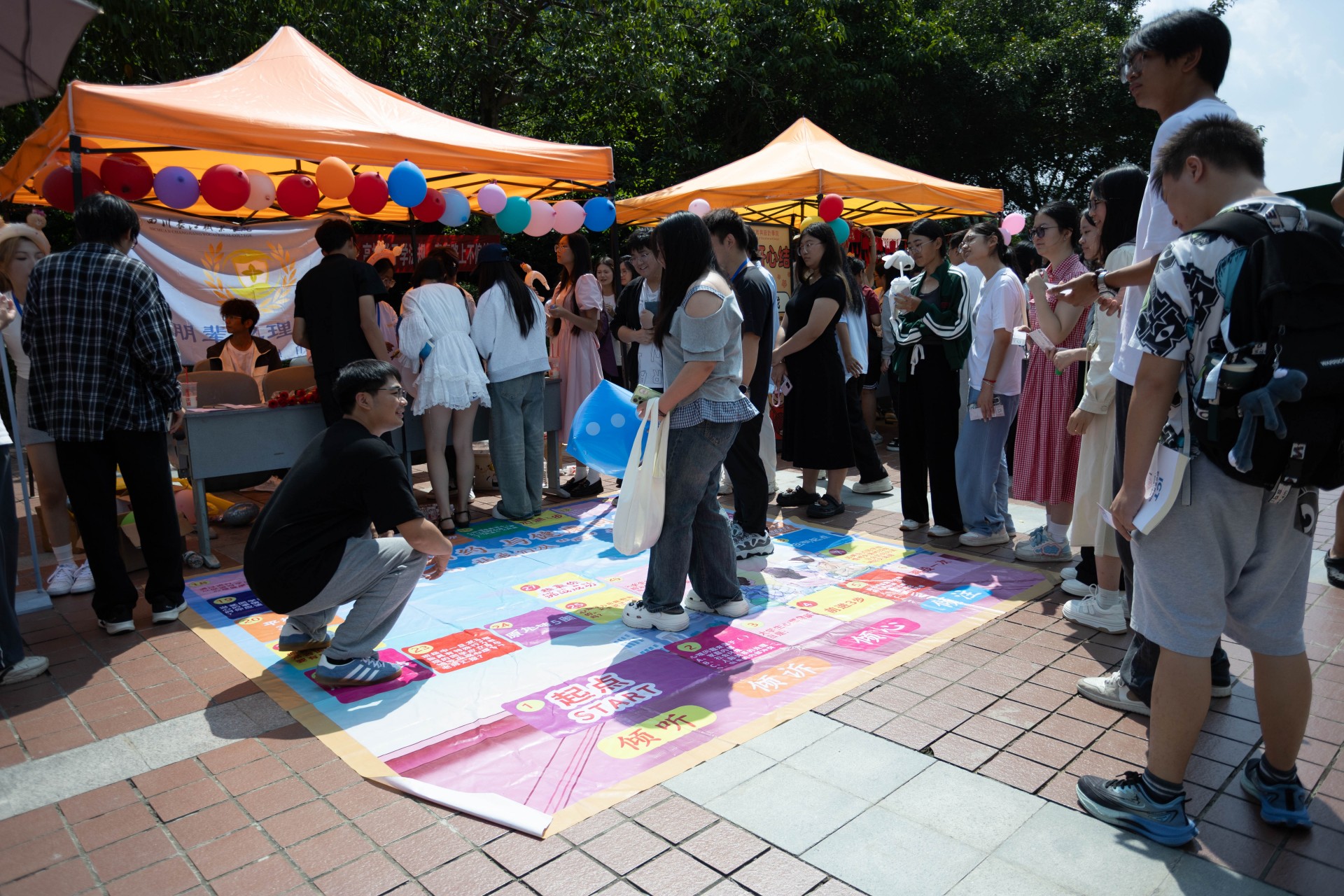 游園會(huì)現(xiàn)場(chǎng)共設(shè)置了六大特色活動(dòng)區(qū)域,內(nèi)容豐富,形式多樣。在“好心情大富翁”區(qū)域,同學(xué)們組隊(duì)協(xié)作,在棋盤格子上完成挑戰(zhàn),增強(qiáng)了大家對(duì)心理健康的認(rèn)識(shí),體驗(yàn)了團(tuán)隊(duì)支持的力量;“Stroop大挑戰(zhàn)”則考驗(yàn)了同學(xué)們的認(rèn)知靈活性,30秒內(nèi)的快速辨識(shí)充滿樂趣與成就感;此外,“纏個(gè)開心結(jié)”、“情緒盲畫”讓學(xué)生們尋找自己內(nèi)心的積極能量、自由書寫心情,“K.O壓力君”通過外化情緒、合理發(fā)泄讓同學(xué)們舒緩焦慮,而“未來信箱區(qū)”則引導(dǎo)學(xué)生沉靜心靈、以發(fā)展的眼光看問題。各活動(dòng)點(diǎn)氣氛熱烈,同學(xué)們?cè)谳p松愉快的互動(dòng)中學(xué)習(xí)心理調(diào)適方法,收獲成長(zhǎng)。