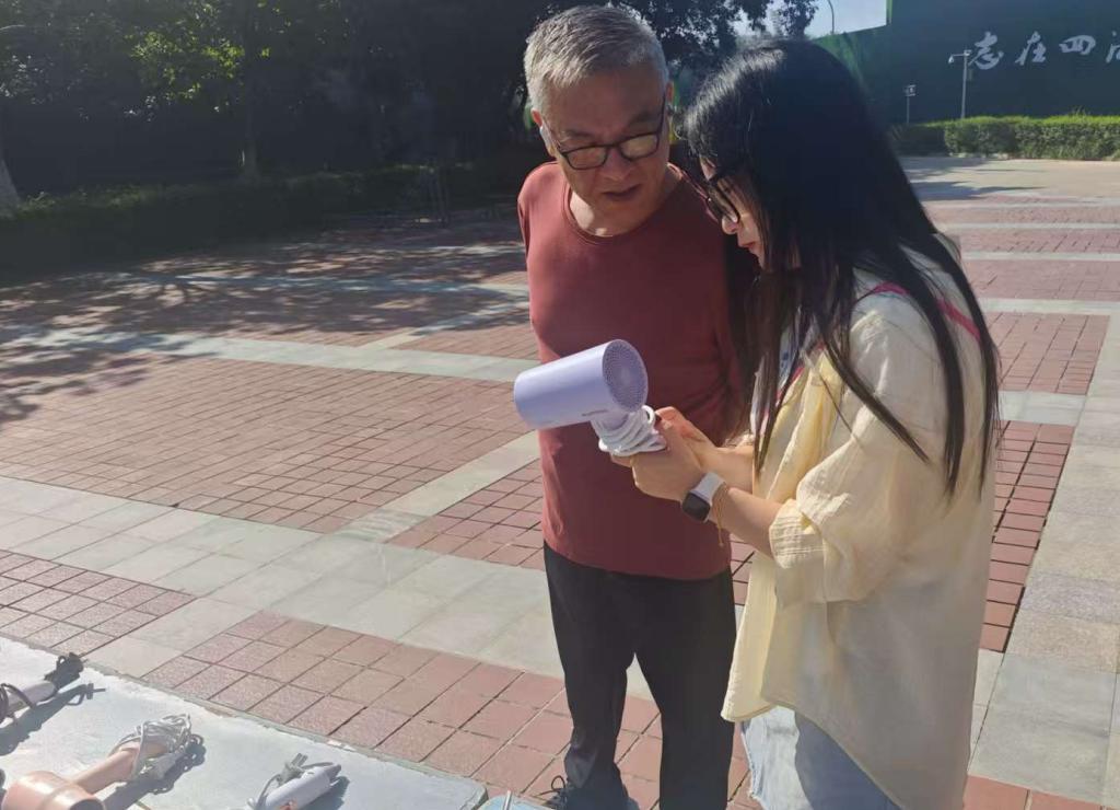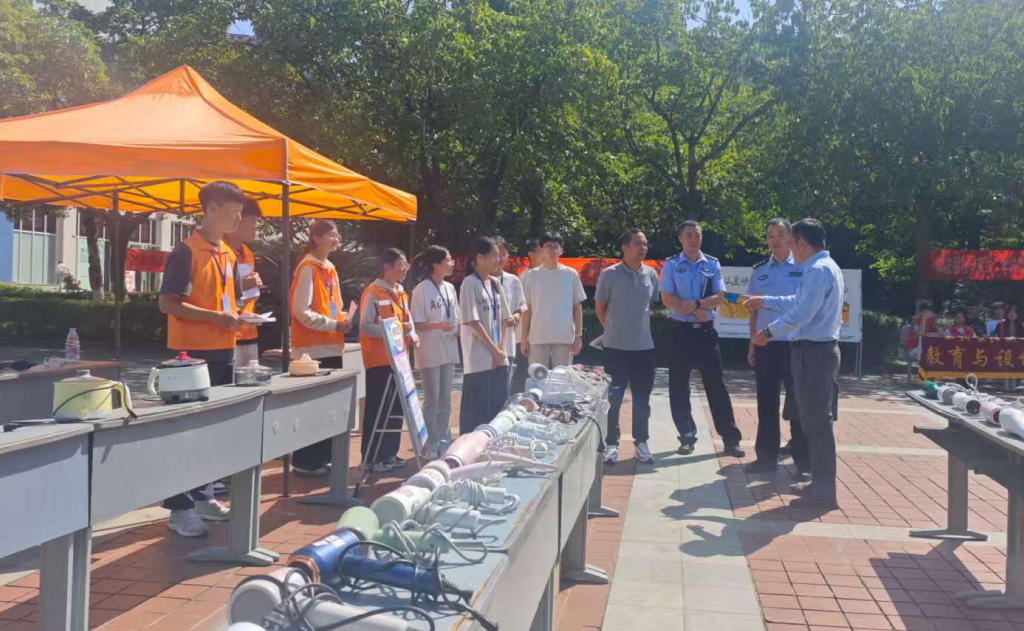 展覽現(xiàn)場,各類在學(xué)生公寓中查獲暫存的違規(guī)電器、管制刀具等違禁物品被集中陳列。與以往不同,除了現(xiàn)場發(fā)放《學(xué)生管理規(guī)定匯編》摘要以外,本次展覽更注重“訴說”與互動。每一件展品不僅是警示物,更是“講解員”,其旁的說明卡以“安全小貼士”的口吻,娓娓道來其潛在風(fēng)險。公寓中心老師與學(xué)生志愿者化身“安全主播”,不再局限于單向宣講,而是主動與觀展同學(xué)互動,解答疑問,傾聽建議,現(xiàn)場氣氛熱烈。學(xué)生發(fā)展處處長周生斌、十陵派出所負(fù)責(zé)安全相關(guān)警員臨現(xiàn)場指導(dǎo)工作,他們強調(diào):"這些看似方便的小電器,實則暗藏巨大安全隱患。學(xué)校應(yīng)該多舉辦此類警示教育活動,為全校師生樹立'安全無小事'的責(zé)任意識,共同筑牢校園安全防線。"