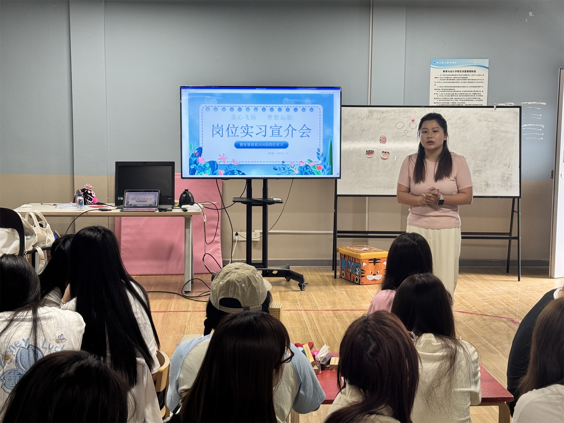 【本網(wǎng)消息】(教育與設(shè)計學院 李永艷供稿)為扎實推進2023級學前教育專業(yè)與嬰幼兒托育服務(wù)與管理專業(yè)的學生的崗位實習工作,幫助其明確實習目標、提升實踐能力,近日,四川長江職業(yè)學院教育與設(shè)計學院教育管理系分批次召開了2023級崗位實習宣介會。實習負責教師李永艷、黃茜,輔導員杜青青、胡娟等深入班級,為同學們詳細解讀實習政策、流程安排及注意事項,并現(xiàn)場答疑解惑。
