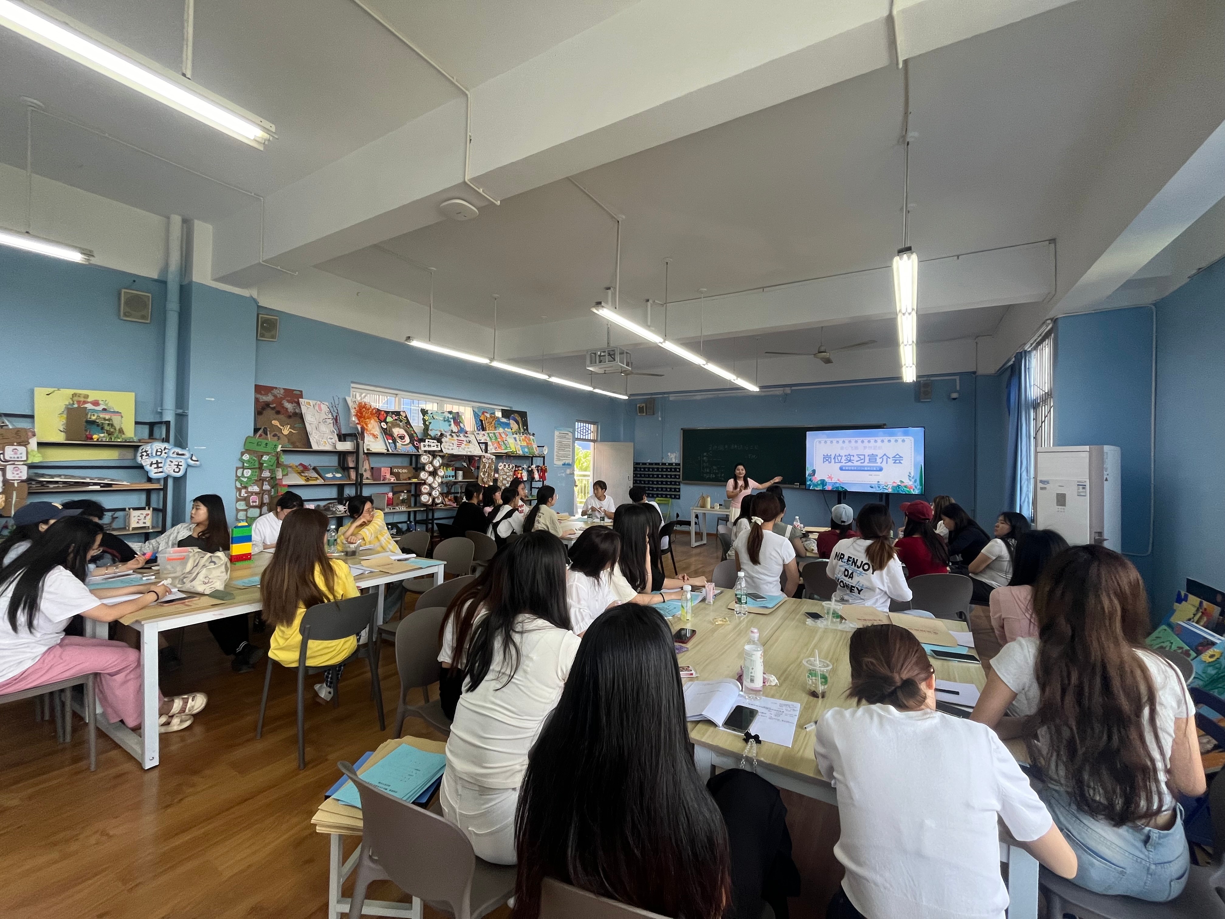 老師們介紹了本次實習的情況。本次實習分為崗位實習和就業(yè)實習兩個部分。教育管理系聯(lián)合成都市優(yōu)質(zhì)托育機構(gòu)、示范性幼兒園等合作單位,構(gòu)建全方位安全保障體系。合作單位為每位學生購買實習人身意外險,消除后顧之憂;安排校內(nèi)資深教師與企業(yè)骨干組成導師團隊,定期巡查指導,實時解決實習中出現(xiàn)的問題。