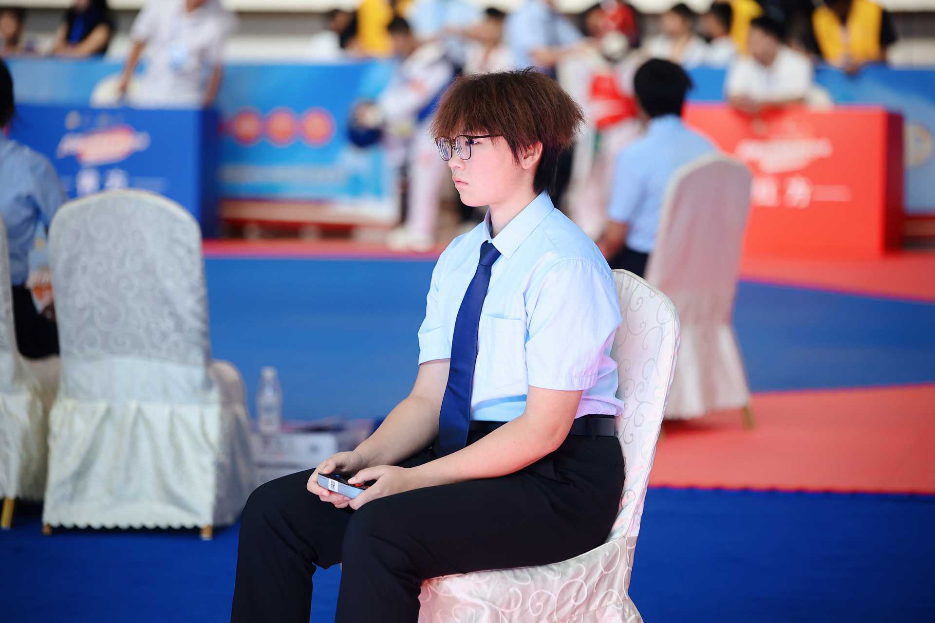 賽事中,我校師生發(fā)揮專業(yè)優(yōu)勢提供全方位支持。教育與設(shè)計學(xué)院體育工作部宋亮亮老師憑豐富執(zhí)裁經(jīng)驗任仲裁,監(jiān)督比賽進程;張晏齊老師帶領(lǐng)2023級學(xué)生程北、2024級學(xué)生牛曉飛任裁判員,以精準判罰與專業(yè)執(zhí)裁保障比賽公平公正。